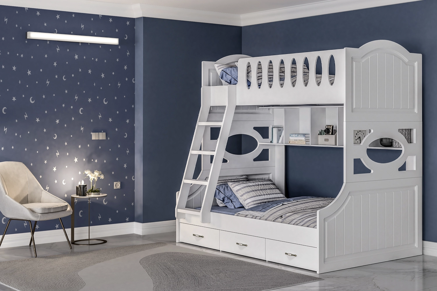 سرویس خواب نوجوان دوطبقه رادو شامل قطعات زیر می باشد :