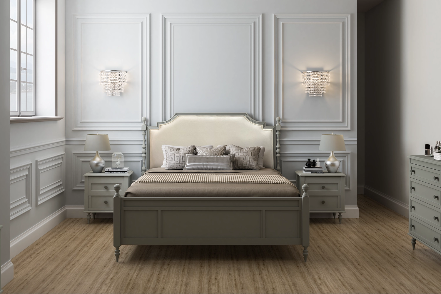 رنگ جذاب و مدل خراطی پایه ها ،جلوه خاصی به این سرویس خواب بخشیده است.