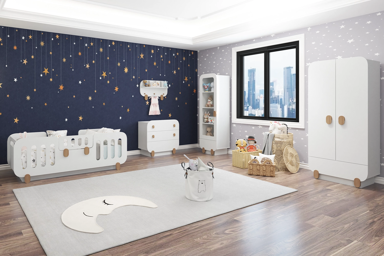 • تخت نوزاد نوجوان سایز 80*180 – کمد دو درب – کمد ویترینی – دراور – ویترین – شلف
