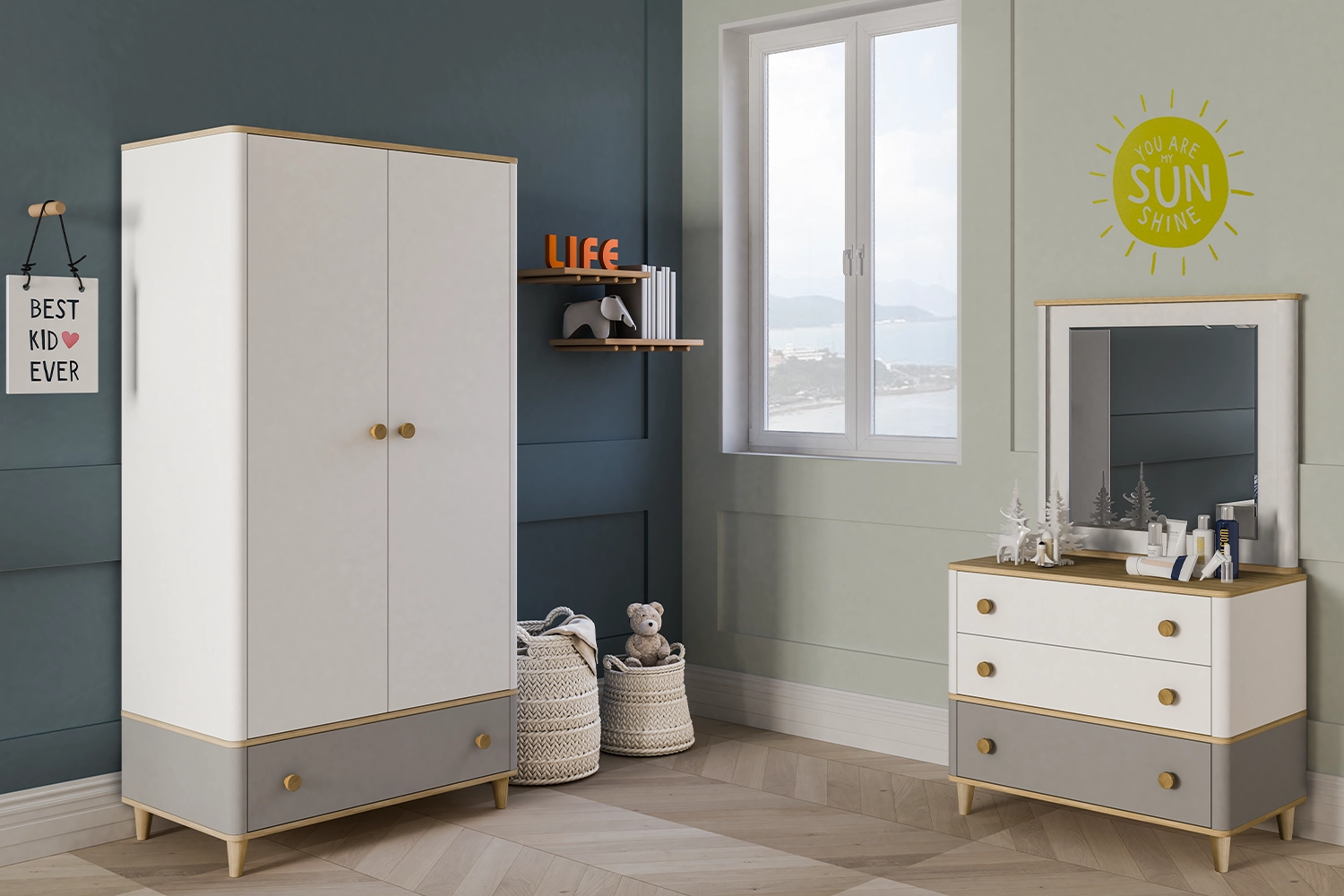 این مدل شامل تخت نوجوان در ابعاد ۹۰ ، ۱۰۰ ، ۱۲۰ ، پاتختی ، کمد ، کتابخانه ، دراور آینه ، میزتحریر می باشد .