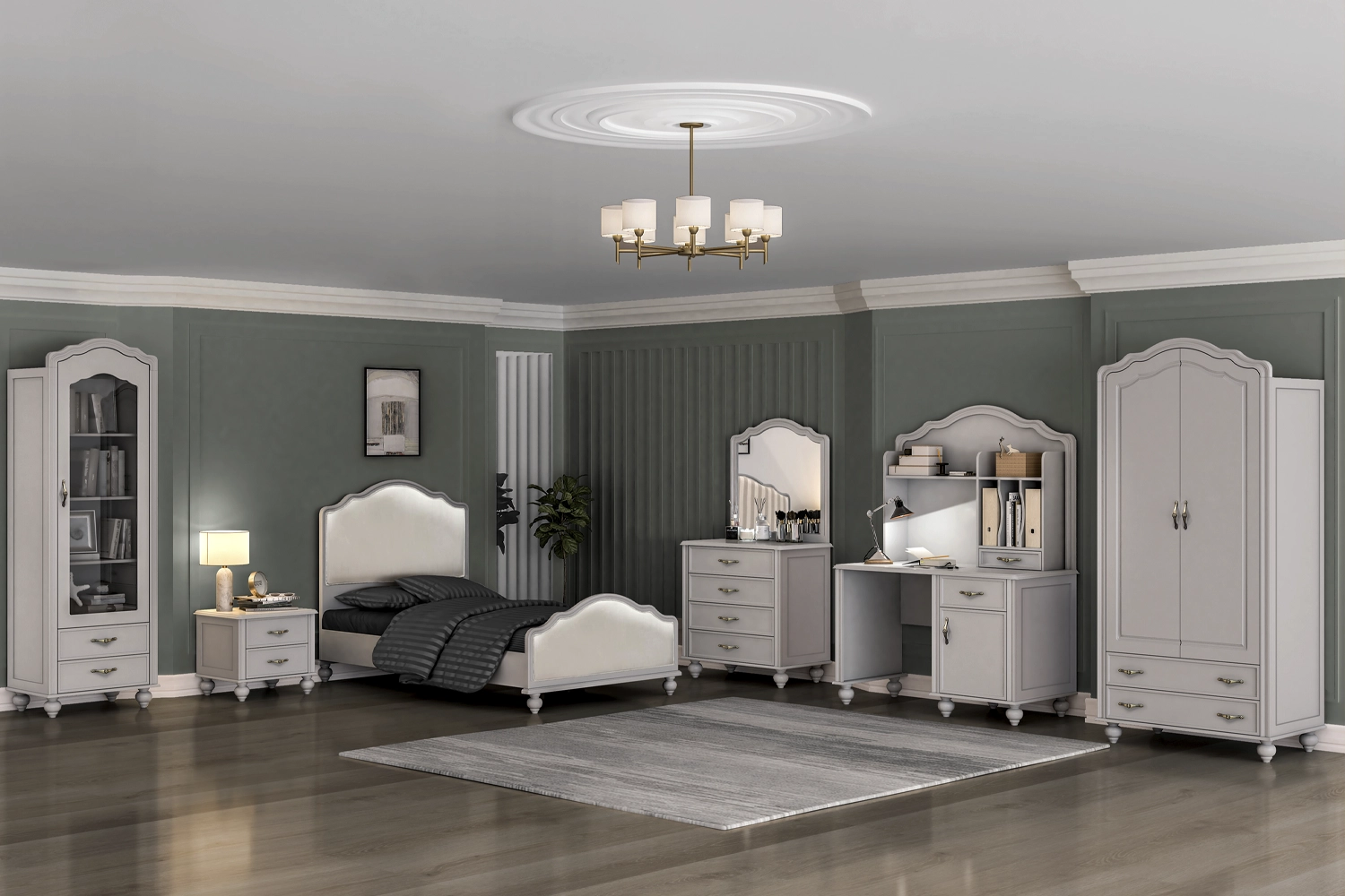 • تخت در سایزهای 90، 100، 120 سانت – کمد – میزتحریر – میز آرایش – دراورآینه – کتابخانه – پاتختی